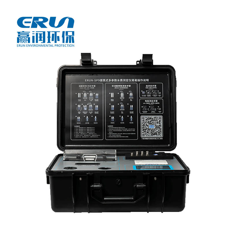 贏潤集團研發(fā)生產的ERUN-SP9便攜式多參數水質分析測定儀是一款集分光光度法與電極法于一體的水質快速測試設備,專為現場快速檢測和實驗室多項目分析而設計。手提式多功能綜合水質測定儀配備16通道光學檢測系統,可精準測定COD、氨氮、總磷、總氮、重金屬等60余項指標,同時支持PH、電導率、TDS、鹽度、溶解氧及水溫等參數測量,涵蓋從污染源追蹤到飲用水質控制的多種應用場景。便攜式多參數水質檢測儀內置雙溫控消解裝置,采用鋰電池供電,無需外部電源,在野外、無電環(huán)境中依舊穩(wěn)定運行,是環(huán)境監(jiān)測、科研實驗、污水處理廠、高